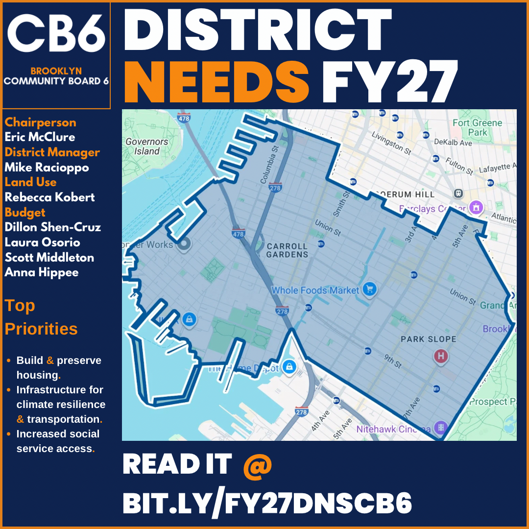 The best way to reach Brooklyn Community Board 6 is by email at [email protected]. Email not only ensures the fastest response, but it also allows us to track and create a record when handling issues such as 311 complaints that may require follow-up. If you’d like to schedule a call, please email us and we’ll find a time that works for you. For specific questions, comments, or concerns, please include the details in your message, and we will respond as quickly as possible.