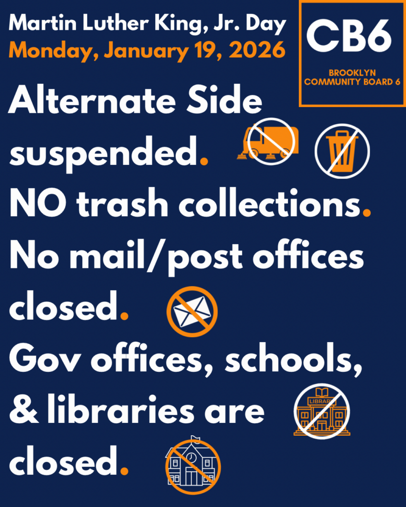 Alternate Side Parking is suspended for Martin Luther King JR’s Birthday.