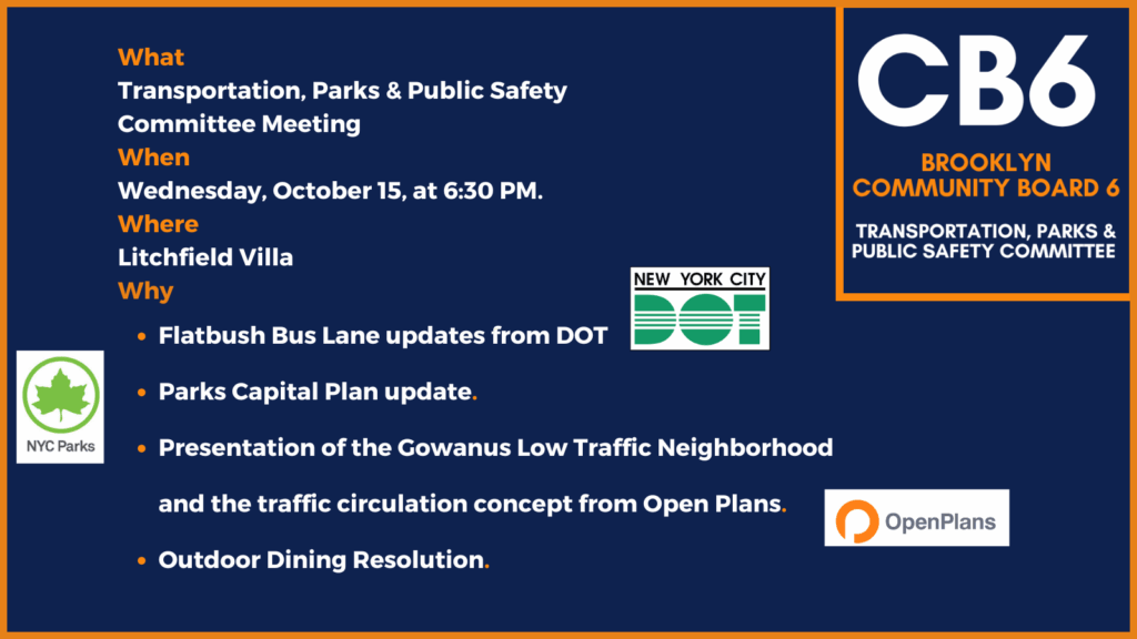 CB6 Transportation, Parks, Public Infrastructure and Safety Committee Meeting
